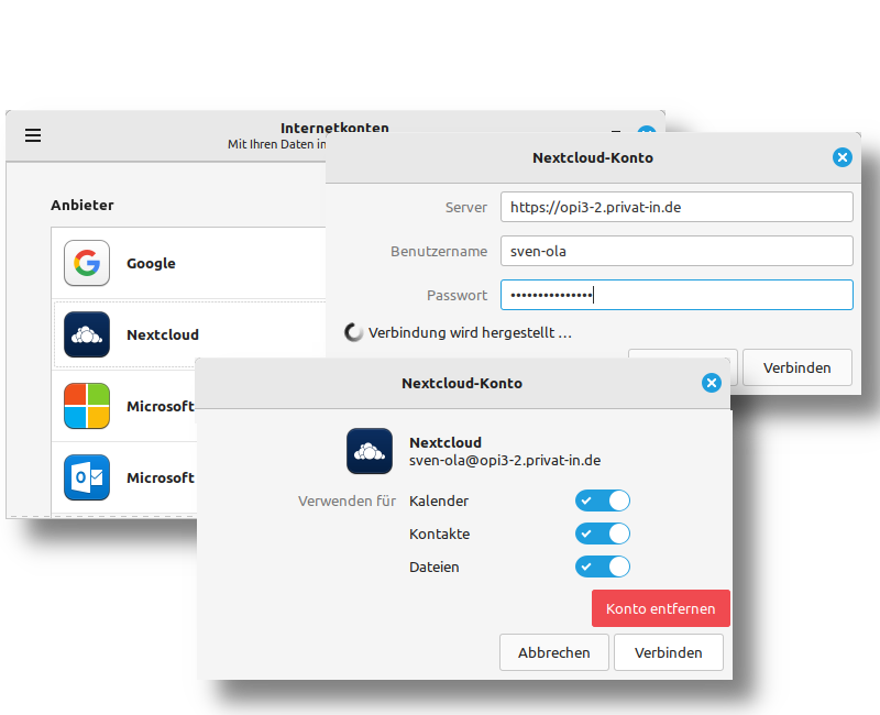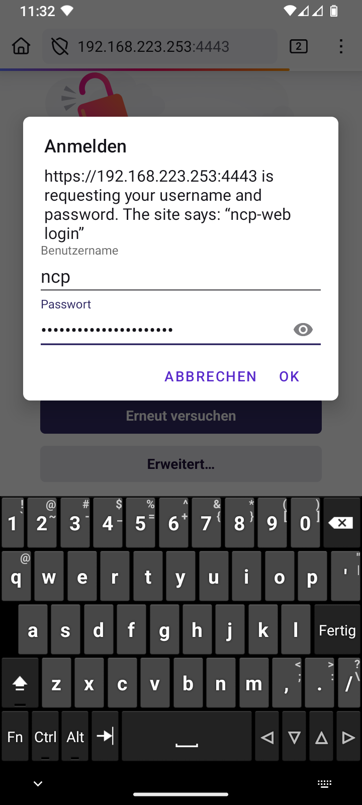 Passwort-Dialog musst du den Kontonamen „ncp“ angeben und