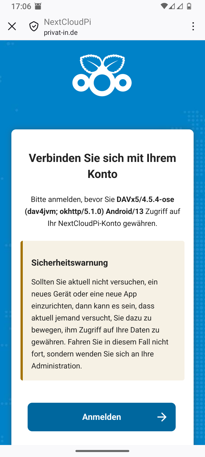 NextcloudPi-Panel auf Port 4443. Mit der