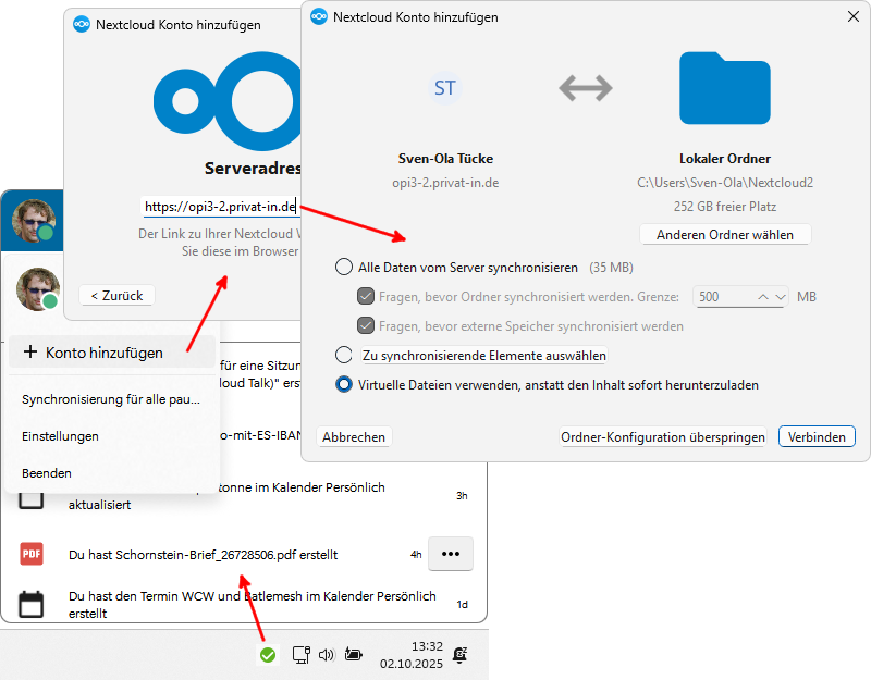 Cloud-Software: Die Cloud-Software Nextcloud ist ein in Deutschland hergestelltes System zur Verwaltung von persönlichen Daten (siehe https://nextcloud.com/de/). Neben Datei-Synchronisation zwischen verschiedenen (eigenen) Rechnern und Smartphones kannst du Kontakte, Adressen oder Fotos zentralisiert speichern und verwalten. Du kannst eigene Dateien zum Download durch andere Benutzer anbieten, Informationen mit anderen Benutzern über einen Chat austauschen oder mit einem gemeinsam bearbeiteten Dokument Projekte koordinieren. Die Nextcloud-Software kann mit einer Web-Oberfläche bedient werden. Über den Nextcloud-App-Store kannst du zusätzliche Apps installieren. Es gibt außerdem passende Dienstprogramme für gängige Computer- und Smartphone-Betriebssysteme.