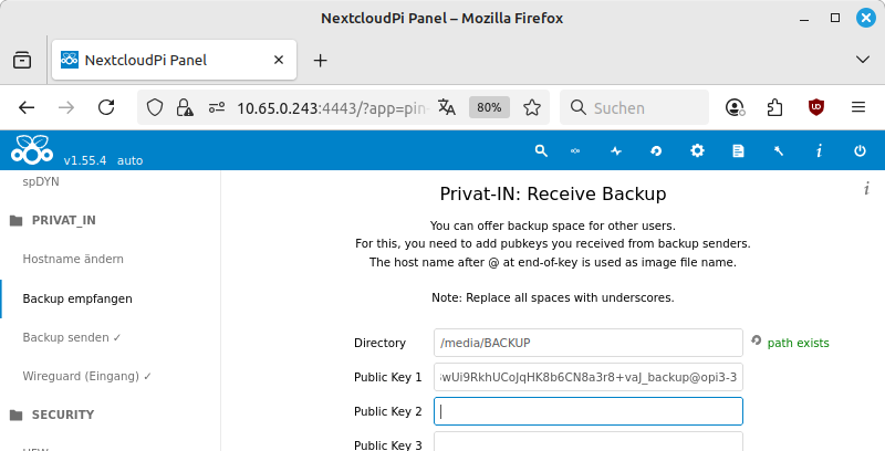 NextcloudPi-Panel: Backup empfangen |