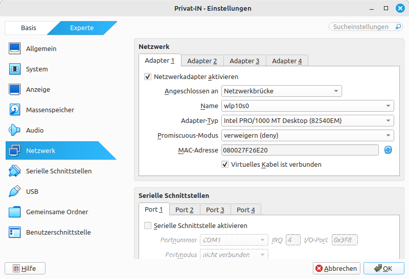 Port-Einstellungen die Einstellung für