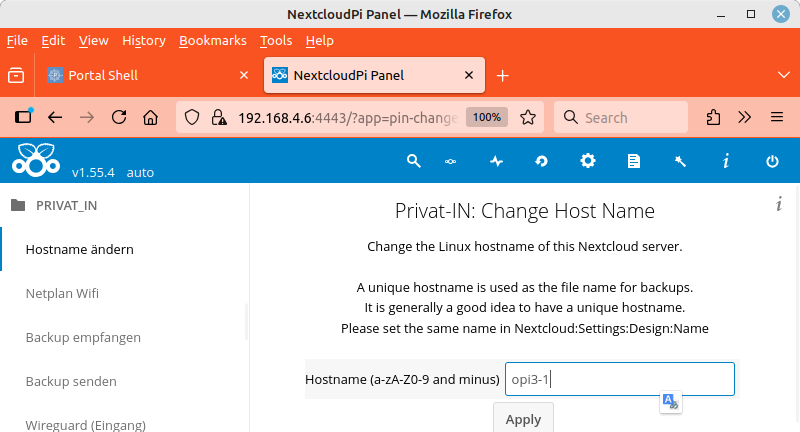 NextcloudPi Panel: Connecting a USB hard drive | |
